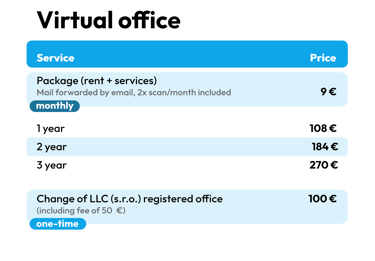 Accounting, virtual registered office for entrepreneurs. Limited liability company (s.r.o.) formation.